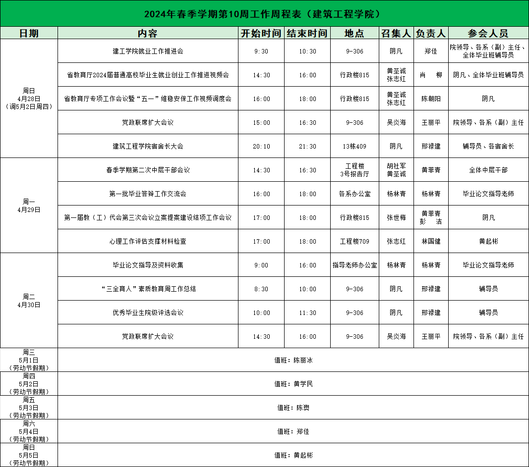 2024年春季学期第10周工作周程表(伟德国际1946bv官网)