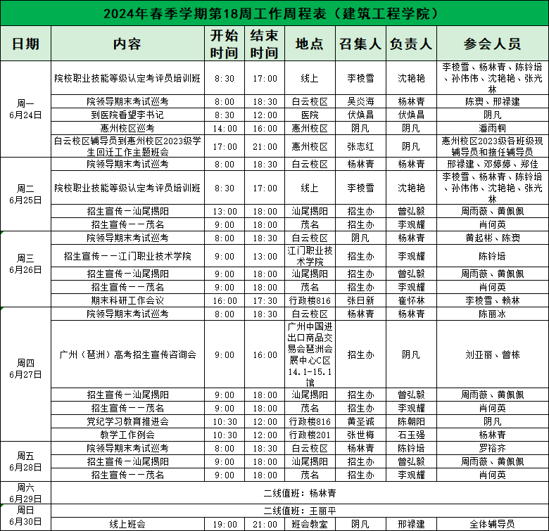 2024年春季学期第18周工作周程表(伟德国际1946bv官网)