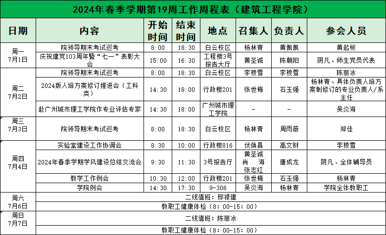 2024年春季学期第19周工作周程表(伟德国际1946bv官网)