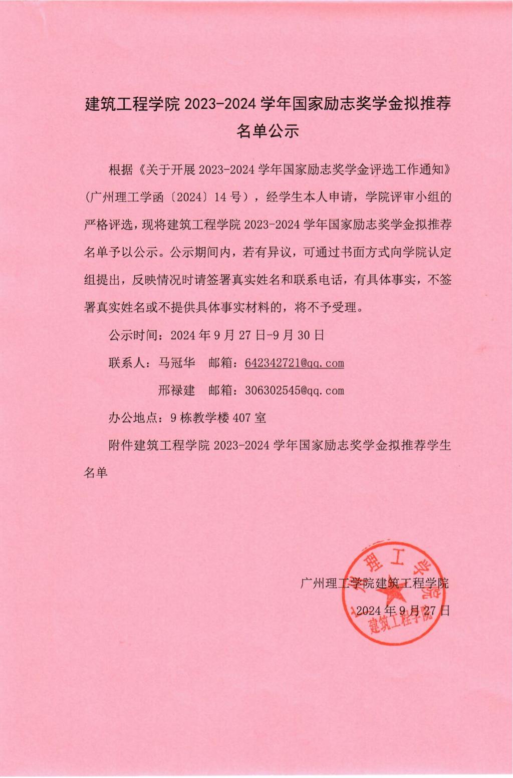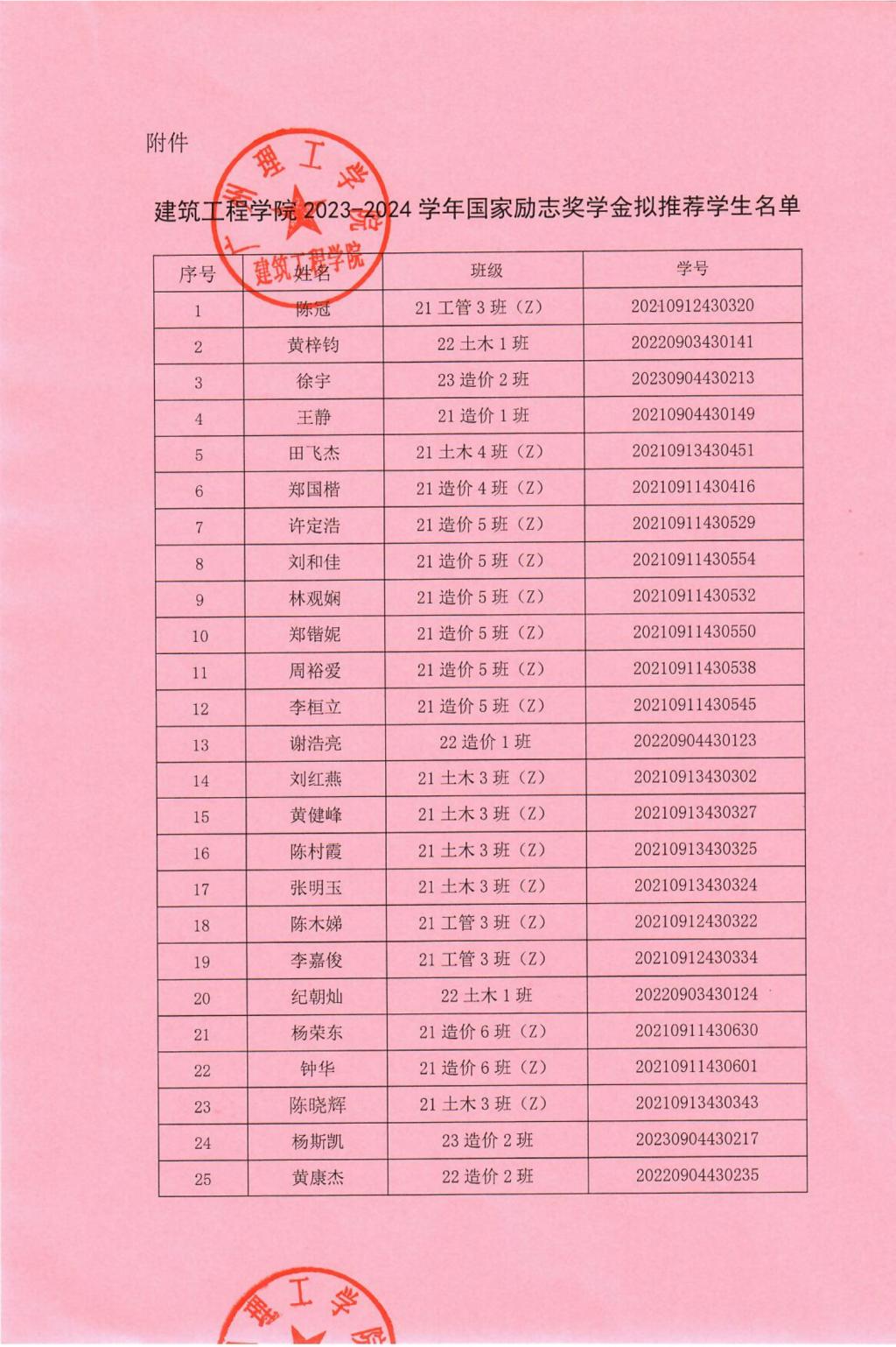 伟德国际1946bv官网2023-2024学年国家励志奖学金拟推荐名单公示