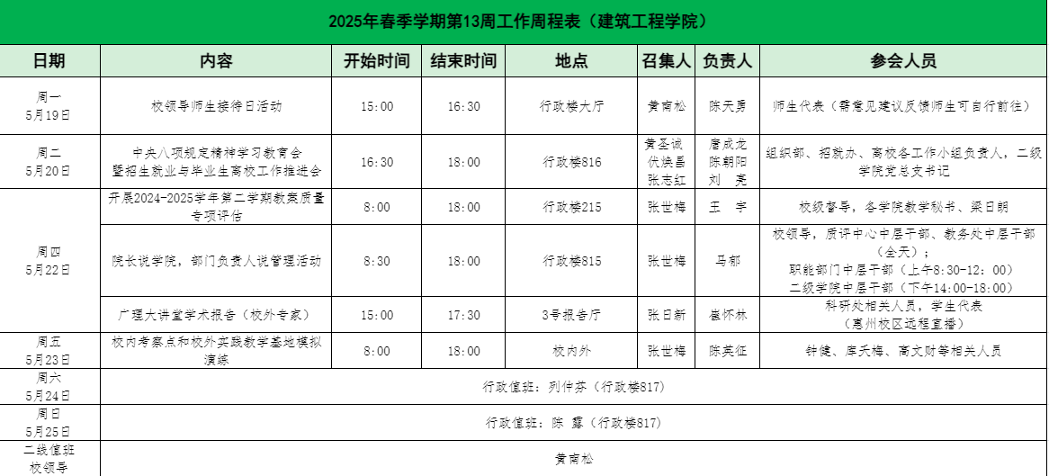 2025年春季学期第13周工作周程表(伟德国际1946bv官网)