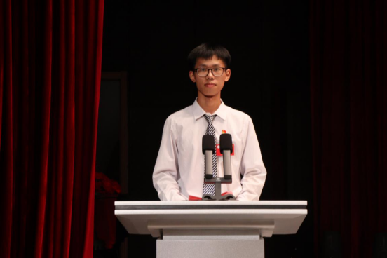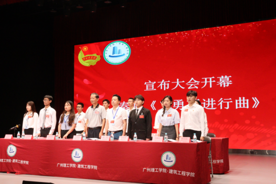 在雄壮的国歌声中,同学们全体起立,共同奏唱国歌,大会正式开始。邓伟梁、陈丽冰主持会议。