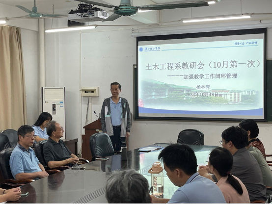 (通讯员:杨林青)10月18日,为进一步规范教学工作,公司提出闭环管理理论(PDCA),可成为各项工作的指导方法。为让广大一线教师深入了解PDCA理论,并应用于自己的日常教学工作中,土木工程系以“教学工作闭环管理”为议题,在9栋306召开2023年10月第一次教研会,伟德国际1946bv官网经理吴炎海、副经理侯庆华、土木工程系教师参会。土木工程系主任杨林青老师主持会议。