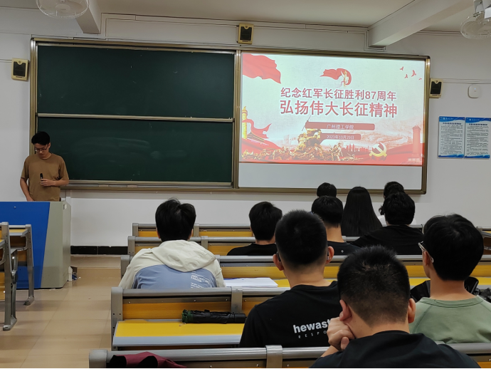 在班会上,辅导员及各班班委以“弘扬长征精神,走好新时代长征路”为主线,通过PPT、视频等形式,向大家介绍红军长征的原因、长征精神的内涵及意义、长征中的重要战役、五大伟大长征精神及走好新时代长征路等内容。同学们深刻体会到了长征路上的艰辛,以及红军战士们身上体现出的伟大长征精神。