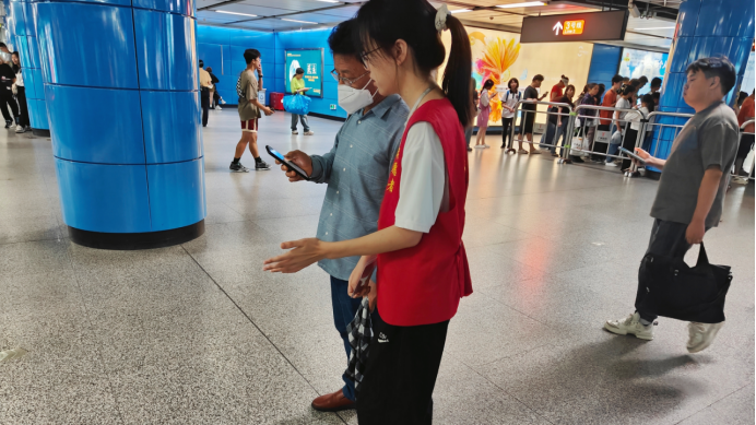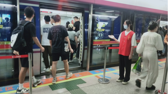 活动开始前,地铁工作人员从岗位服务要求、志愿者服务标准、安全注意事项等方面对志愿者进行岗前服务培训。在这期间,志愿者们认真学习并快速熟悉相关工作。随后,各点位志愿者迅速进入工作状态,主要服务内容为引导乘客上下车,协助乘客购票,为乘客提供咨询帮助,维持地铁站的秩序。活动开展期间,志愿者们各司其职,积极主动地为乘客提供帮助,用行动诠释“暖心”服务理念,以细致、热情的工作态度来服务人民群众。志愿者的无私奉献和付出,不仅为人民群众提供了便利,也为地铁工作人员减轻了负担。