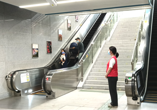 志愿者引导乘客进出站